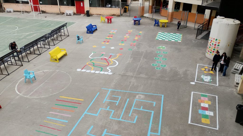 El proyecto se construyó de manera participativa, involucrando a estudiantes, docentes y asistentes de la educación en el diseño y ejecución de juegos educativos pintados en el patio del colegio, los cuales fueron implementados a través de cinco jornadas de trabajo colaborativo, promoviendo metodologías activas, convivencia escolar y aprendizaje basado en la experiencia.
